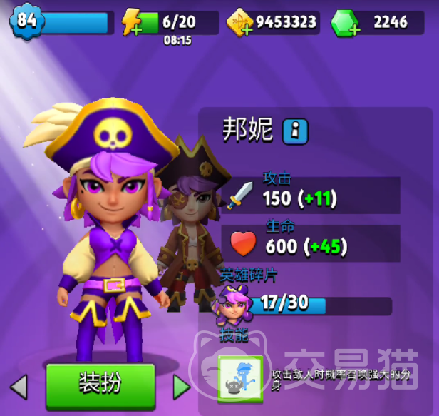 在弓箭传说中有一个很多玩家都比较喜欢的角色就是邦妮,这是游戏中较强的一个女性角色,而且相对来说这个角色是比较稀有的,想要获得这个角色有两种方式,一种的方式就是直接进行充值购买,另一种方式就是在游戏中不断的收集碎片,集齐这些碎片之后玩家就可以兑换这个英雄,相对来说英雄的攻击力,生命值都比较高,是一个输出能力非常强的角色。
