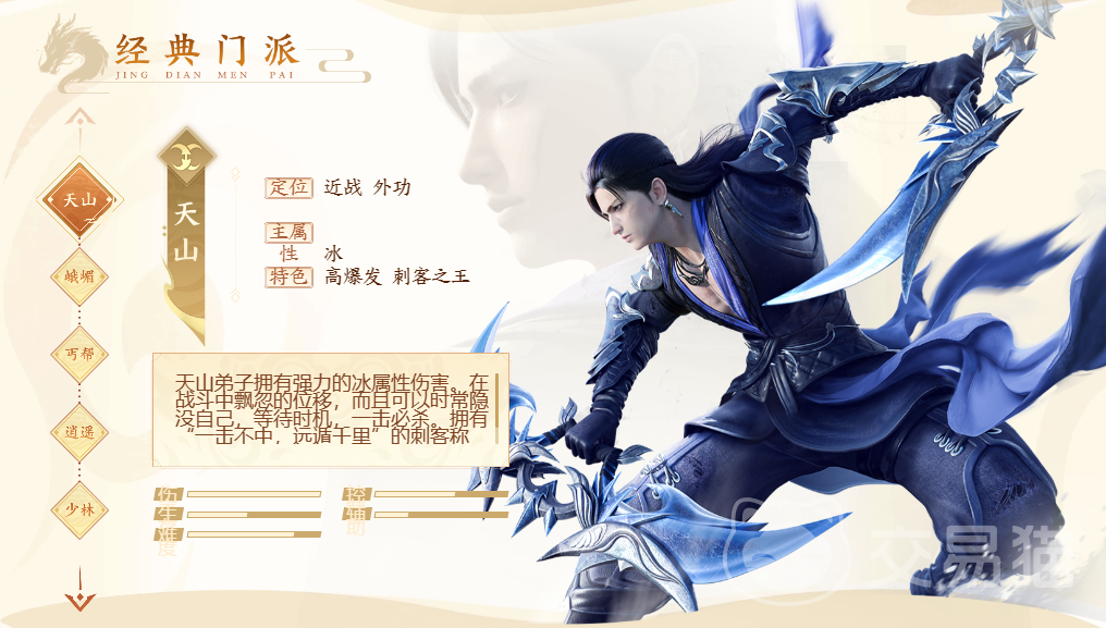 新天龙八部手游中有五大门派,分别是天山派、峨嵋派、丐帮、逍遥派和少林派。每个门派都有自己独特的强身技能,天山派是一种近战攻击职业,擅长使用飞刀和暗器。天山派的强身技能叫做“天山神芒”,可以增加自己的攻击力和暴击率,同时提高自己的火抗和冰抗。天山神芒可以让天山派在战斗中造成更高的伤害,并且对付火冰系法术有一定的抵抗能力。