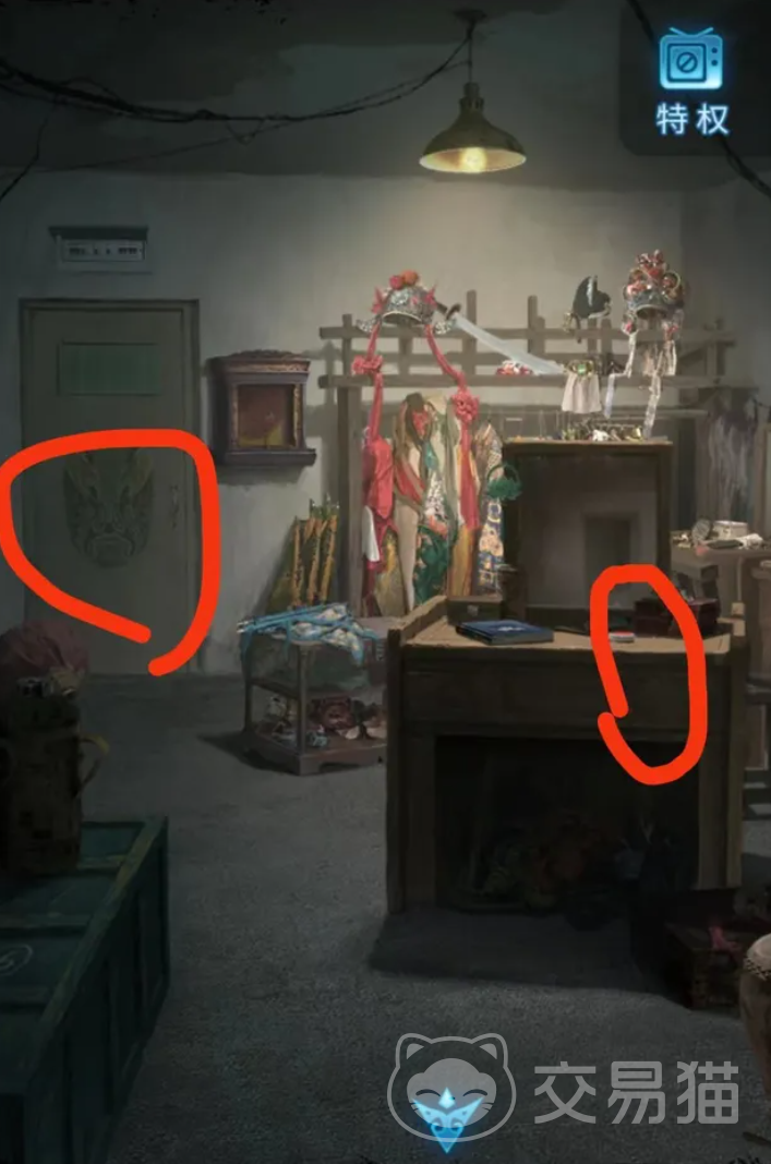 脸谱这个线索需要先行找到画笔和油彩。画笔在第一折旧魇的剧场左侧座椅上的盒子里,密码是奠丧婚吉嫁,这个密码是根据剧场右侧墙上的文字提示得到的。油彩在第一折旧魇的化妆间里,你需要用纸伞打开门上的电闸才能进入。