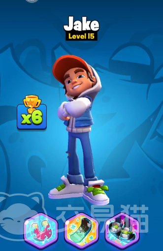 因为这是地铁跑酷的续做,所以在游戏中人物还延续了之前的设定,首先就是大家非常熟悉的杰克,就是很多人在玩地铁跑酷的时候就会选用的人物,是一个穿着非常时髦的男生,帅气的街头穿搭也给很多人留下了非常深刻的印象,角色在游戏中有三个不同的技能,游戏开局之后就会脚踩滑板前进,如果在游戏中收集到了吸铁石或者其他类型的滑板,就可以直接更换使用。