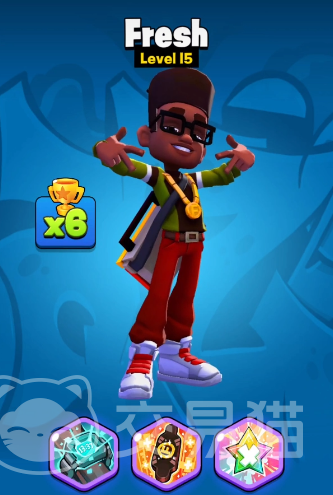 游戏中还有一个角色是黑色的皮肤,人物的头发还做着高高的造型,这个人物在游戏中叫小黑,人物在游戏中会带着黑边眼镜,公主也是非常独特的红绿搭配,在这个游戏中,人物可以有较长的滑板使用时间,而且更重要的是在操控人物的过程中,获得的分数都是双倍的,如果玩家想要获得更高的分数,那一定要来挑选这个角色,但是这个人物在操控上肯定也会更加困难,而且想要解锁这个人物,也需要玩家完成设定的任务。