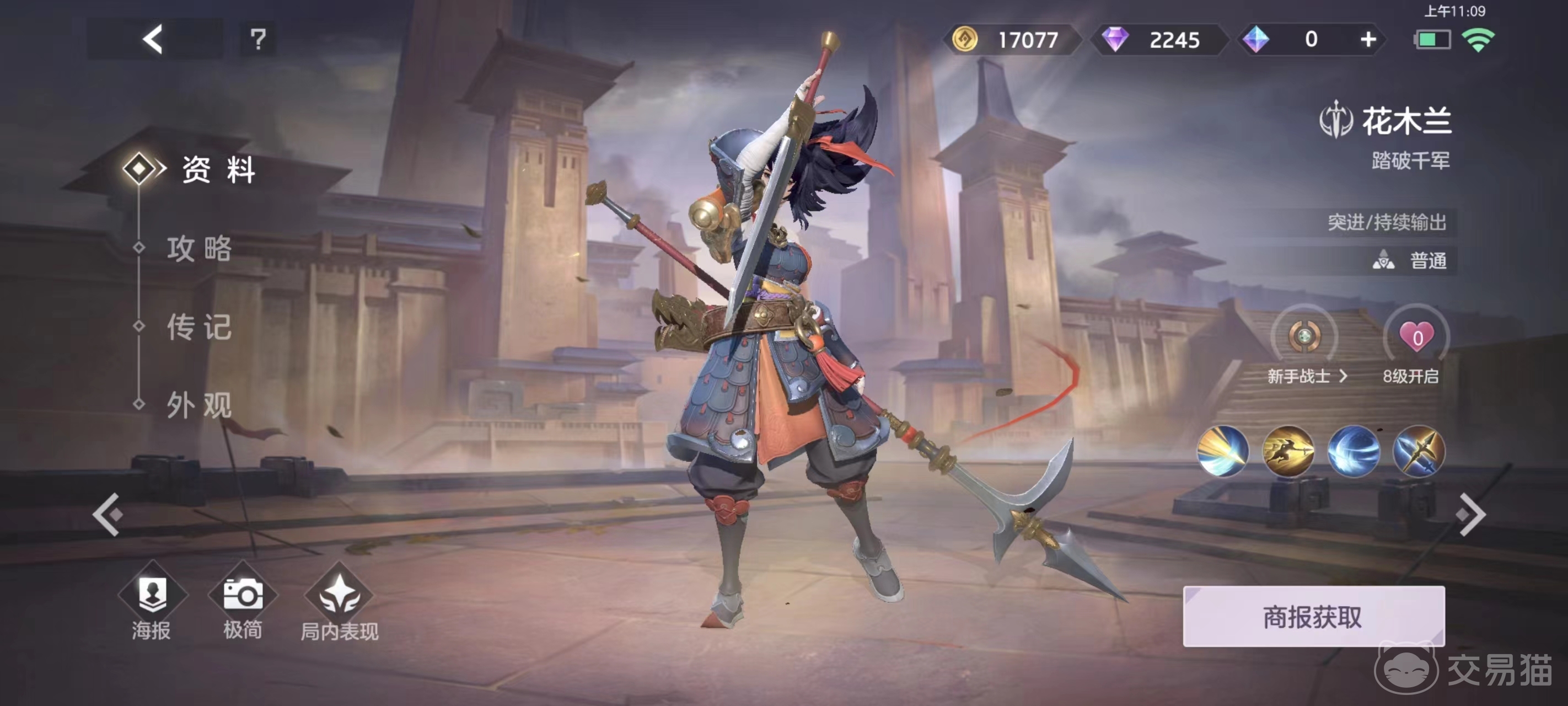 花木兰这边在属性面板上和刘备对比显然是不具备任何优势的,不过她的技能提供了更强的持续输出能力,其被动和一技能相辅相成,花木兰会根据敌人与自己的距离而使用枪和剑两种不同的武器进行攻击,每种武器都能为敌人附加一个专属的印记,当两个印记同时存在就会消除并回复花木兰的生命和能量,所以连招得当的话,续航基本上无需担心。