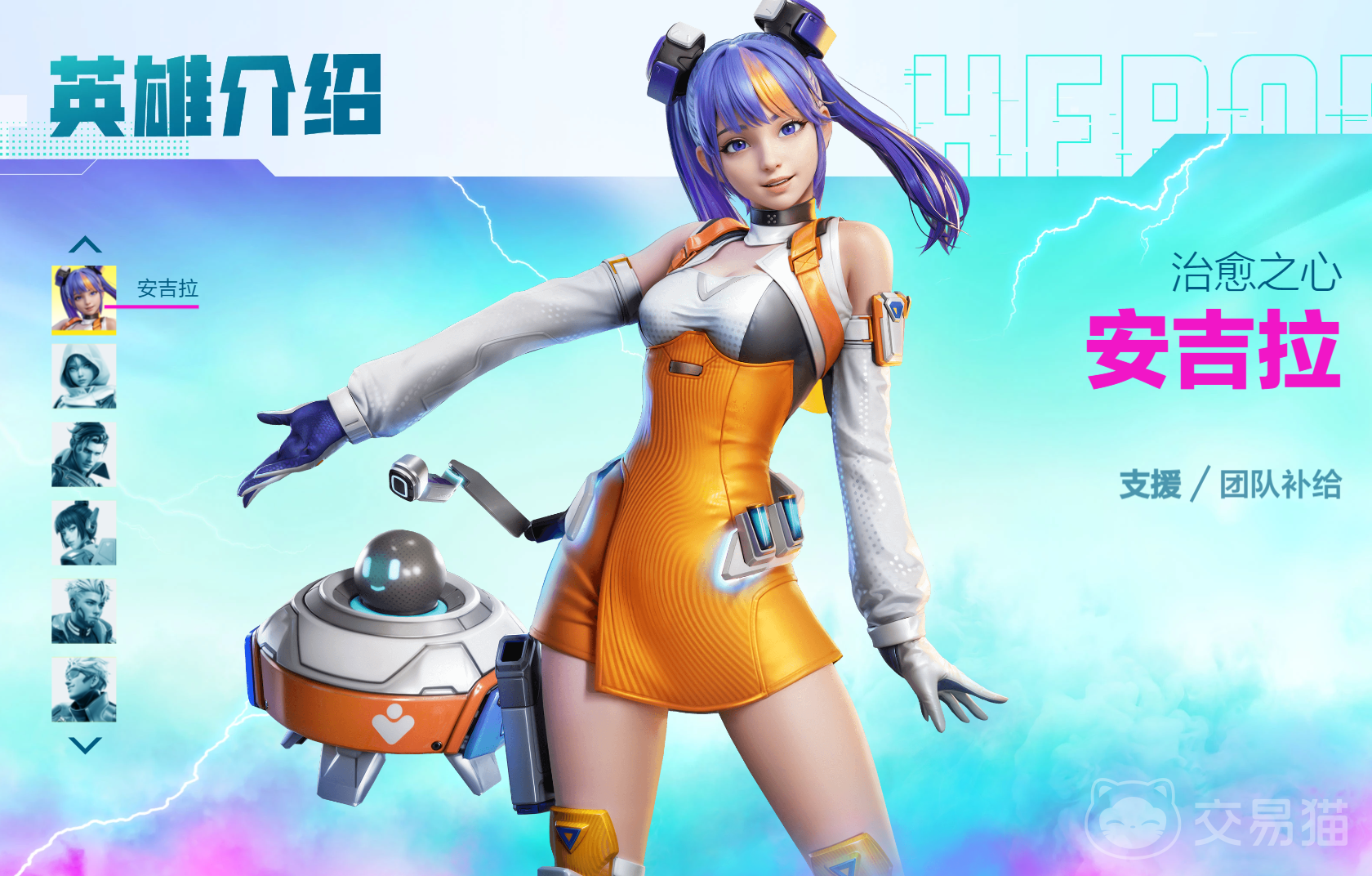 安吉拉:她是一个身穿白、黄色护士服的可爱女孩。她的定位是一个近战治疗和辅助型的英雄,擅长用医疗设备为队友提供恢复和保护。她的战术技能是“救援无人机”,可以向指定位置投掷一个救援召唤单位,队友可以拾取后恢复生命值,并获得一层护盾。她的被动技能是“紧急补给”,可以在自己或队友受到伤害时,为周围队友提供一定比例的生命回复。她的被动是“心肺复苏”,可以让她出发之后派使无人机进行紧急救护,能把阵亡的队友重新拉回战场!安吉拉适合在近战保护队友,利用无人机和心肺复苏为队友提供持续治疗和增益效果。