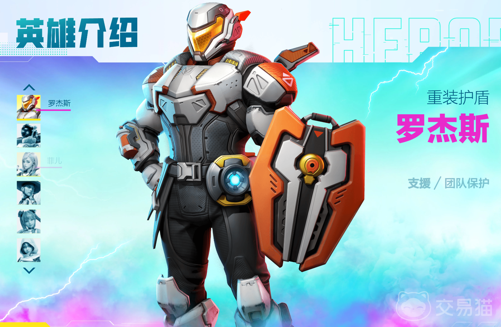 罗杰斯:他是一个身穿金属盔甲,头戴头盔的机械战士。定位是一个近战坦克和防御型的英雄,擅长用机械盾牌为自己和队友们提供高额防御型盾牌。他的战术技能是“能量盾”,可以为自己前方生成一个15s的能量盾,吸收一定量的伤害。他的被动技能是“金属体质”,可以在受到伤害时,增加自己的护甲,并减少自己受到的控制效果。他的绝招是“全体护盾”,可以向队友全员附上一个离子化护体。罗杰斯适合在近战承受敌人的攻击,利用能量盾和金属体质提高自己的防御能力。