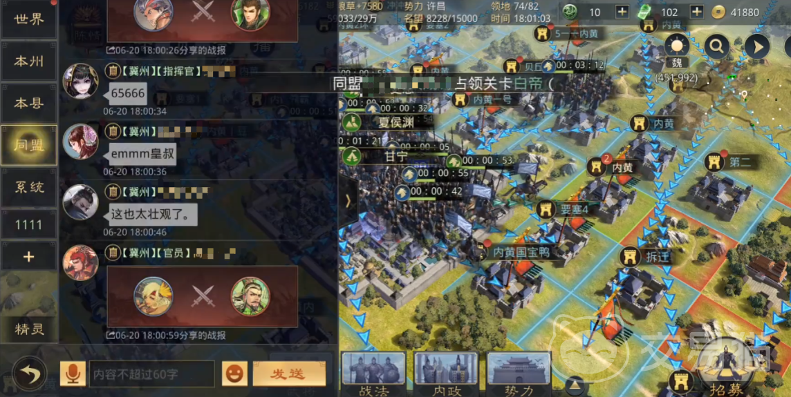作为成员要做什么呢?首先就是4个字“服从命令”,管理者让怎么做就怎么做,让开始建要塞就建要塞,让什么时候调兵就什么是调兵,主力队不厉害那就去拆迁,一个队还不够就再出一个队。然后就是组建一个专门用于拆迁的队伍,这个很重要,可以是以步兵为主,学习“毁墙”或是“云梯”,战法学“冲车”,要保持合适的攻击距离,以普攻为主打守军,把握好距离非常重要。