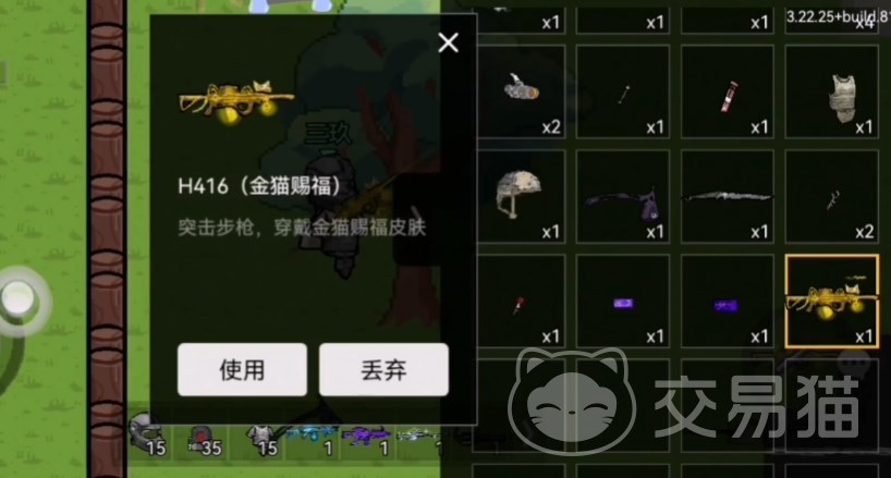从主界面进入“猫区”,打开里的背包,找到这把武器点击使用就可以直接使用武器,甚至不需要将装备放在物品栏,子弹用完之后自动切换到物品栏的另一把武器,这时候再打开背包,拖拽这把枪放到正在使用的武器上,这样手中的武器就会变成H416金猫,并且子弹也是满的。
