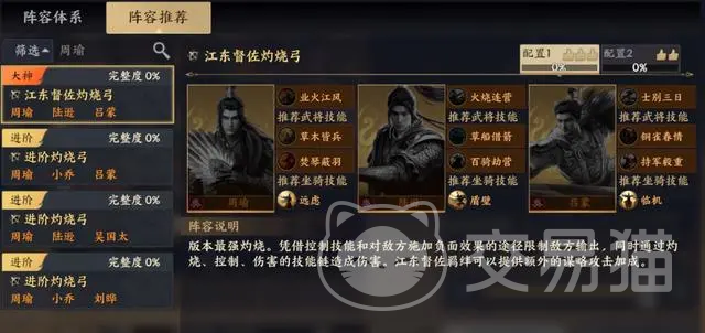 第三套灼烧流,这套阵容是由陆逊、周瑜、吕蒙所组成的,另外还需要搭配他们三个的专属火攻技能,在搭配完成后该阵容在实战中就可以打出非常恐怖的法术伤害,另外还可以让敌人一直处在火焰烧伤的状态下,在这高输出加上稳定的debuff输出的情况下,可以说没有阵容能吃得住该阵容的伤害。