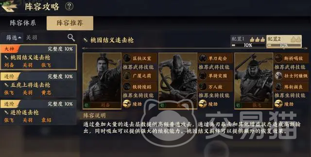 在游戏中目前t0级的阵容一共有六套,首先是第一套连击流阵容,这套阵容是由关羽、马超和赵云所组成的,除了武将之外大家还需要搭配上他们仨的专属技能,按照这样配置的话该阵容也就成型了。在其成型之后大家就能在实战中体会到该阵容的强度了,实战的时候该阵容可以打出完美的连击链,这几个连击链可以让该阵容中的每一位角色一直处在爆发期,源源不断的对敌人发动攻击,在这个攻击节奏之下很少有敌人可以撑得下来。