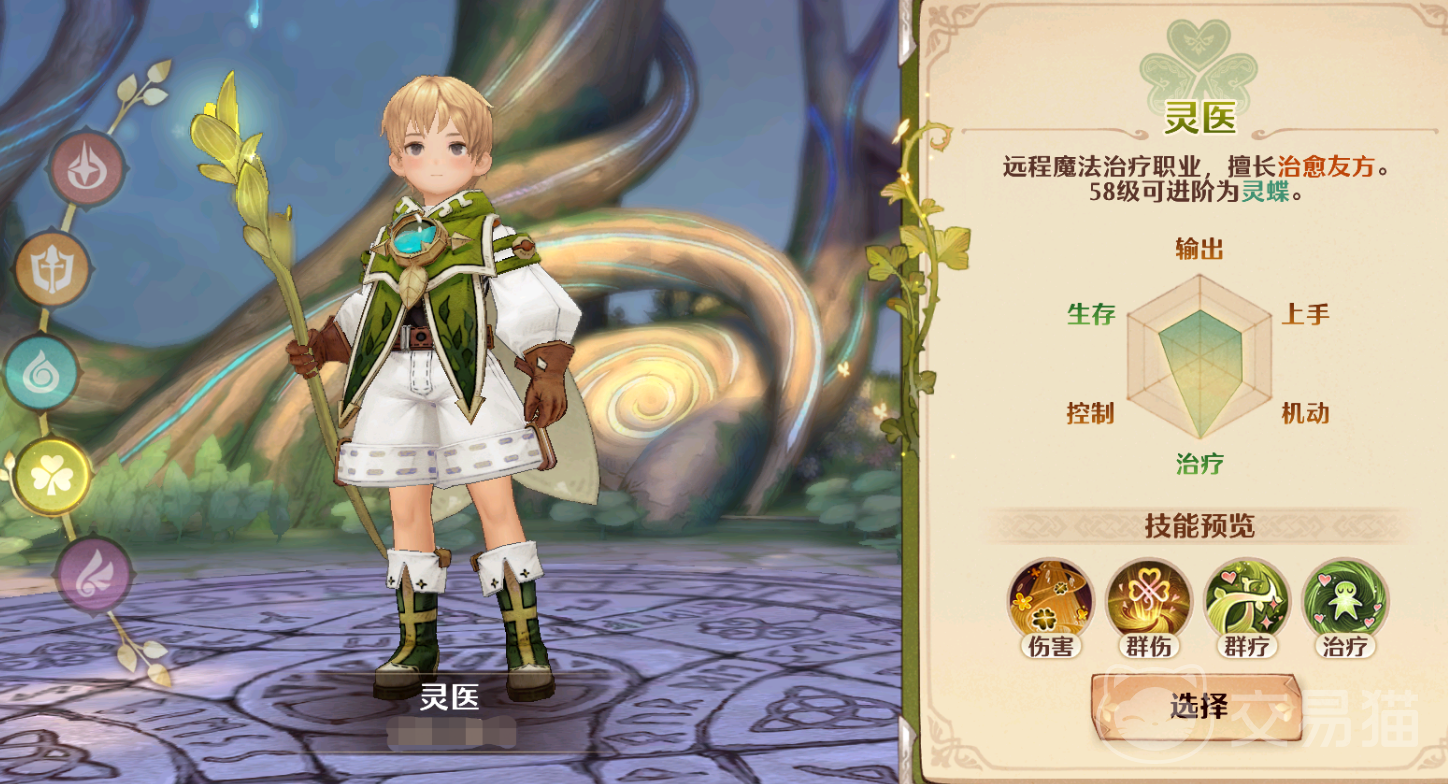 灵医:它是游戏内的奶妈职业,有着出色的治疗能力。其一技能是“神树之触”,类型为单体伤害技,使用后会在1.5秒内对单体敌人造成高额的魔法伤害,该技能的基础伤害一般,但魔攻加成相当恐怖。