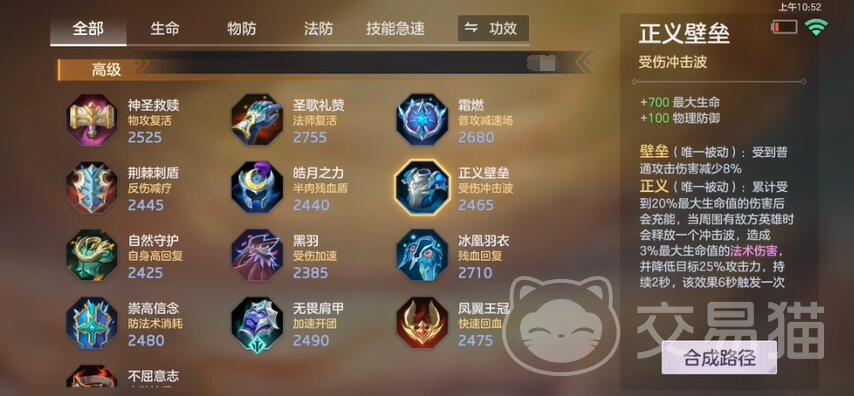 考虑到游戏中的装备数量十分惊人,这里小编就给大家分享几个比较常用的装备,让各位能够快速get到这些装备的效果。那么第一件装备,就是几乎所有对线英雄都会出的物防鞋——钢铁之翼,这件装备除了能给英雄提供60的移速加成和40点的物防提升之外,还拥有一项能够让穿戴者减少8%所受物理伤害的被动效果,由于这件装备的防护效果相当突出,因此在很多时候都被当做对线英雄的必出装备。