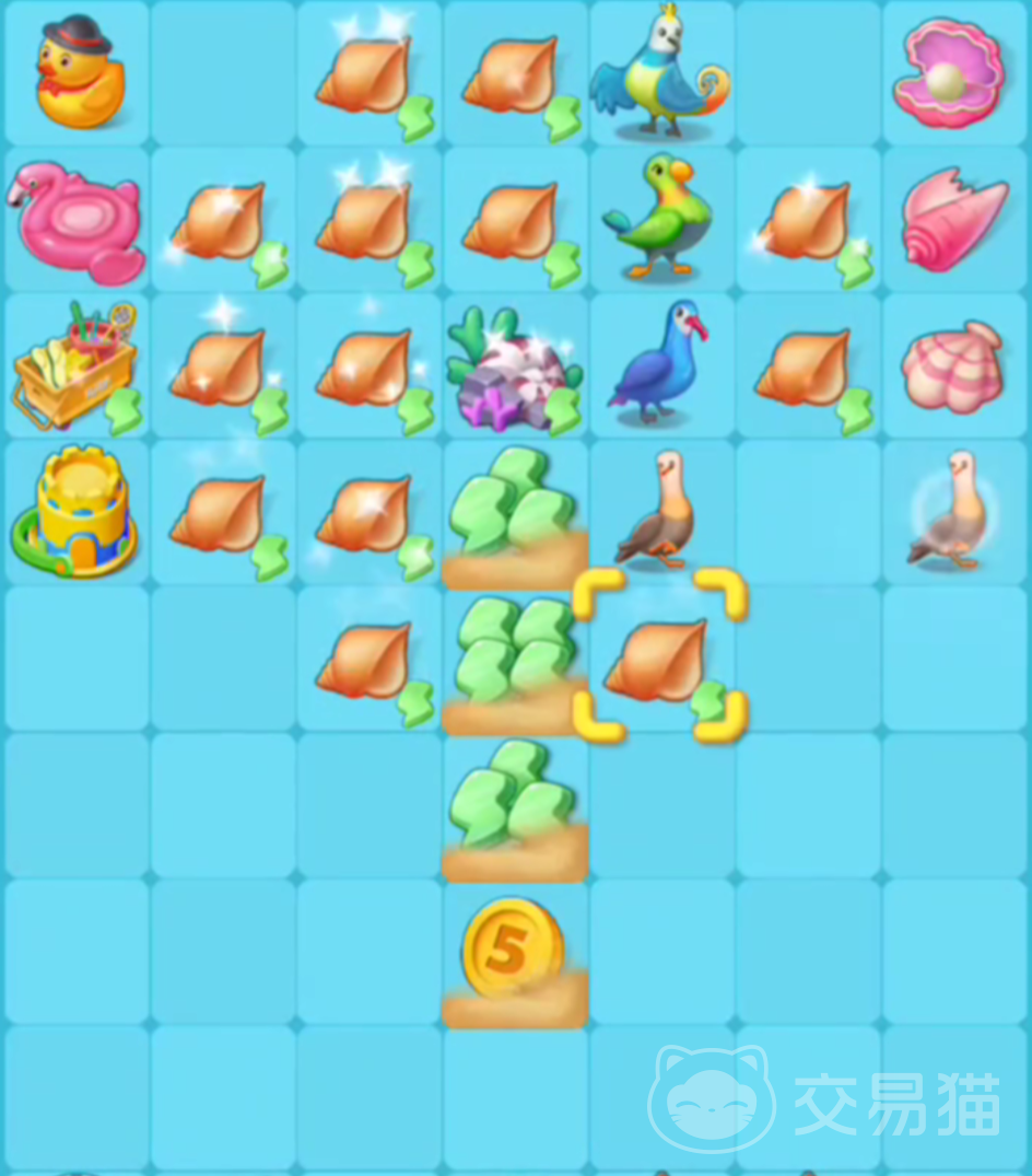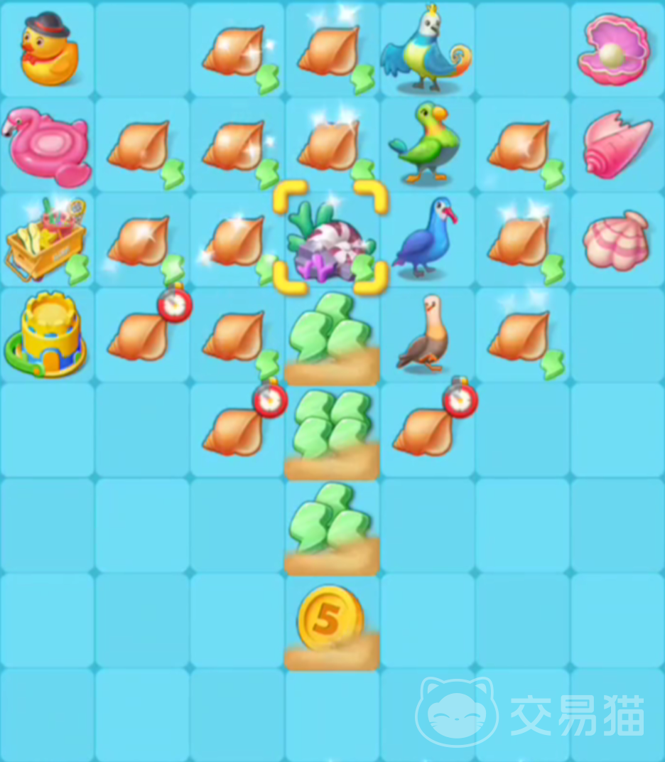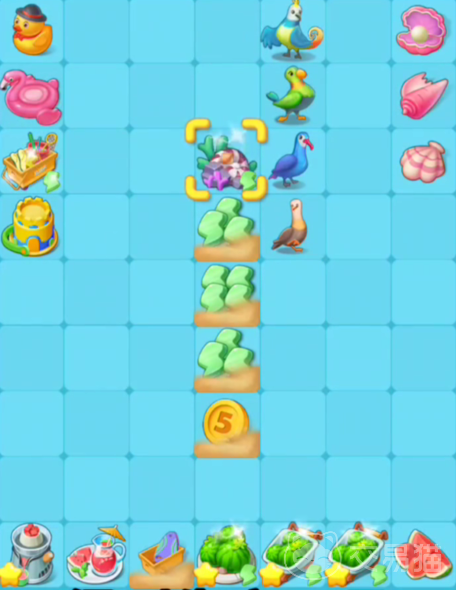 接下来,我们要把珊瑚礁放在合适的位置,让它们有足够的空间来生成新的物品。如果一切顺利,我们就可以进行下一步了,那就是点击珊瑚礁,让它产生贝壳。贝壳作为一个合成海鸟、军舰鸟的必备流程。可谓十分关键。但是在我们合成贝壳之前,需要等待它们的冷却时间结束。