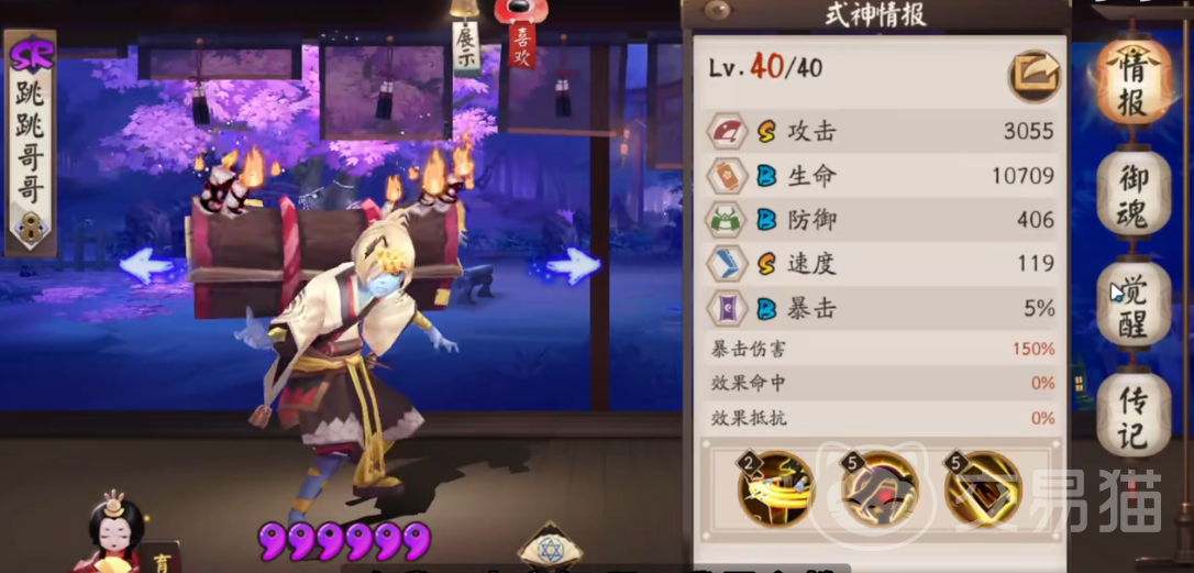 在式神的页面中找到跳跳哥哥,点击跳跳哥哥来到详情的页面,在详情压面中大家就可以看到这个式神目前的属性数值,第三项就是觉醒,进入觉醒的页面后,只要材料是满的,消耗材料跳跳哥哥就会觉醒啦,大家这个时候返回到式神页面就可以看到觉醒之后的属性如何啦。