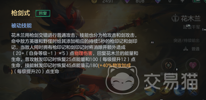 因为花木兰的攻击可以对敌人造成不同的伤害,普通攻击就会对敌人进行枪剑攻击,而且对敌人造成伤害的时候还会附加剑印效果,如果敌人身上有两种不同的伤害,那么在印记消失的时候还会额外造成伤害,同时自身还会回复能量值!