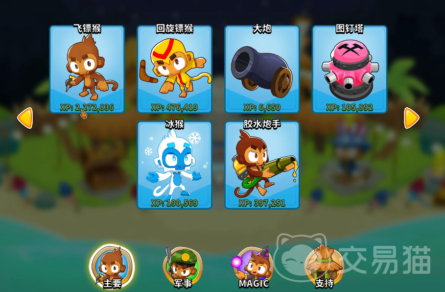 快速提升等级的同时大家也不能盲目升级,大部分玩家不知道自己该选择先给哪些角色升级,其实大家要是想要自己的战力更高的话,先从基础的一些猴子开始升级会更好,比如说飞镖猴,这是很多玩家在基础过关的时候都会第一个放出来的猴子,在效果上面虽然没有说多好,但是打底使用的效果自然是可以的,在升级之后攻击模式上面也会更有穿透性,多次穿透的效果会针对前期的一些气球,所以前期升级的话大家就考虑一下飞镖猴。
