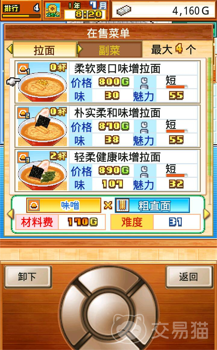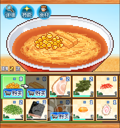 在售卖拉面的时候,小伙伴们可以将顾客的等级升到最高等级,顾客等级越高购买高等级拉面的几率就越多,接下来就是豚骨拉面的配方啦,苹果+生姜+大蒜+生姜+大蒜+黑胡椒+砂糖+豚骨类的东西,在店铺的装修也一定要跟上,大家如果想做一些别的料理也可以替换掉黑胡椒,如果前期顾客等级不高的话,大家可以贩卖一些等级比较低的拉面来提升顾客的等级来提升顾客的等级,让顾客的消费的拉面等级变高。
