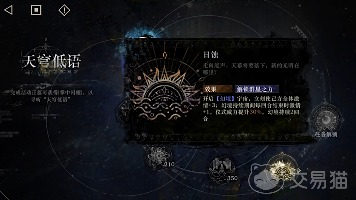 当然,如果想挑战后面那些关卡的艰难模式,那么就得进一步培养角色,使其最少达到洞悉2了。除了角色的练度以外,此次活动关卡中还新增了天穹低语的功能,战斗前可以在三中卡牌中任选一个,战斗中完成对应条件即可将这些卡牌纳入手牌进行使用。
