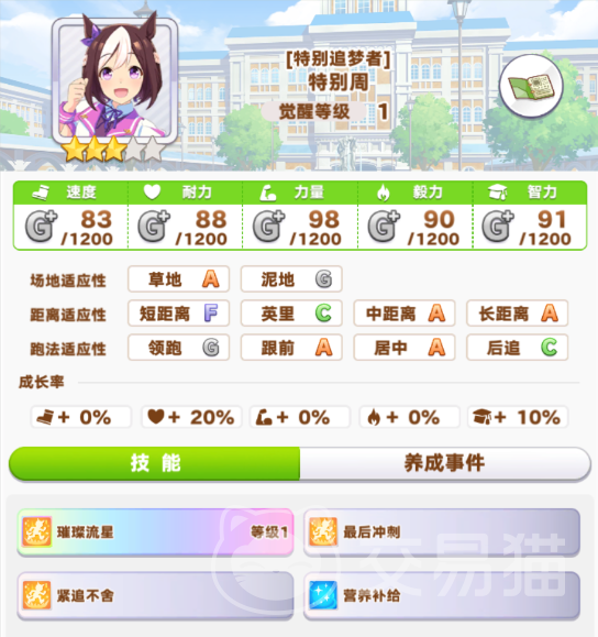 推荐培养樱花进王是因为她自身的数值非常的不错,而且非常适合前期的一些小比赛,在草地中可以取得很高的优势,同时如果是短距离的比赛的话,推荐选择【领跑】或者【跟前】这两个跑法,可以取得的成绩会更好,而在培养方面的话,可以主要先从速度方面来进行训练,当速度值达到E评分的时候,就可以开启训练智力的,智力是比较关乎在比赛过程中,一些弯道需要玩家们进行超速的时候,智力值高的话,如果排名落后在这个时候就会更加容易反超,反之在领跑的时候也不会让其他人那么轻轻松松就超越了;