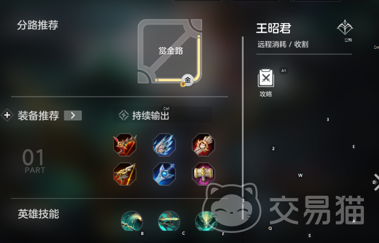 王昭君的操作非常的简单,游戏中主要升级一技能【雁引长空】,这个技能也比较好理解,玩家们可以理解成一个强化普攻技能,而且是持续性的那一种,可能玩家听到持续性就不太理解了,这个技能开启后就可以强化自身的攻击距离,但是换来的是攻击速度和移动速度变慢的代价,对敌人造成的伤害非常的高,前期后期都是依靠这个技能为主要输出技能,但是需要注意的是,这个技能在使用的时候,A出去的每一发平A伤害都是会消耗掉自身的蓝条的,所以在装备选择上面也是需要注意一下。