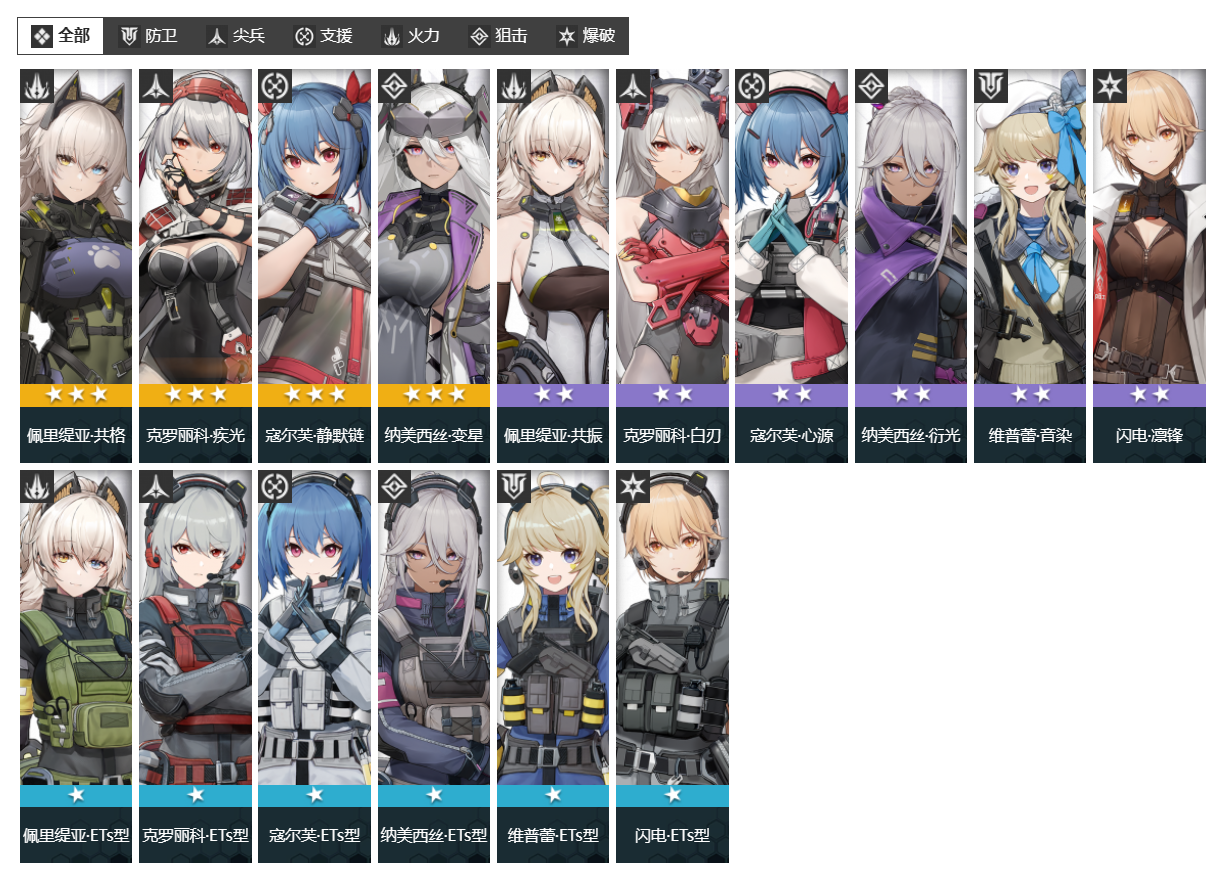 除了属性和技能,你还可以看到每个人形的克制关系。游戏中有五种不同类型的人形,分别是防御型、尖兵型、支援型、火力型和狙击型。每种类型都有自己的优势和劣势,比如防御型对尖兵型有克制,而被火力型克制;尖兵型对支援型有克制,而被防御型克制;支援型对火力型有克制,而被尖兵型克制;而火力型则对防御型有克制,而被支援型克制;狙击型对所有类型都有一定程度的克制,但本身身板也比较脆。需要根据敌方的阵容和地形,合理地搭配自己的人形,才能发挥出最大的战斗力。