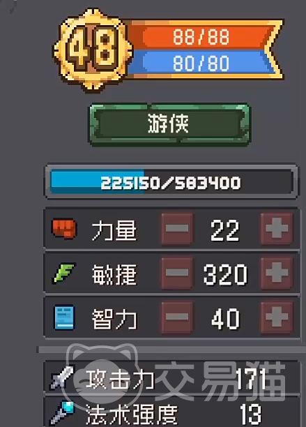 之后在后面升级时所获得的点数都是需要按64开进行分配的,需要将这些属性点分配给速度和力量,这一轮属性的加点完成后下一步就轮到技能的加点了,技能方面首先大家要给游侠的技能全部拉满。