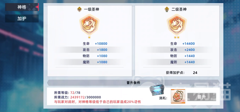 总之进度达标之后,就可以点进兽神,然后选择“神格”来获取对应头衔了,这些头衔包括了圣神和半神等等,拥有之后不仅能让玩家的账号更具个性,而且能够提供十分全面的属性加成,这些加成包括攻防,生命以及与低等级玩家对战时的增伤等等。