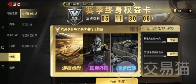 商店的话是没有多大变化的,不过悬赏里面是除了新的皮肤,很多玩家都认为和这个悬赏里面出现的皮肤要比手册里面的皮肤好看一点,这一次的风格是比较正经的风格,在颜色上面也不属于那么逃脱的,但是看起来比较有神秘感,而且在活动中大家也可以看到之前出的永久卡册,这个卡册是赛季众神权益卡,也就说大家一次购买就可以终身享有权益,只需要168,大家就可以终身都享有每一个实际的通行证权益啦,其中的海量点券、稀有外观以及海量物资都是大家每一个赛季需要的资源。