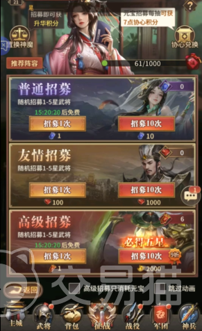 首先对于那些紧缺强力武将的玩家,小编分享一个对各位如同雪中送炭的兑换码:WSZL66,使用之后能够获得两张高级单抽券,以及5个随机的5星武将碎片,除此之外还可以得到2万的铜钱,这些内容在前期都可谓是相当实用了,推荐大家优先使用;而对于缺乏养成素材的小伙伴,这里小编建议大家使用WSZL99这个兑换码,内含88个寒铁矿,88个元宝,以及2张夺宝符,有这些材料,足够顺利帮助各位度过新手期了。