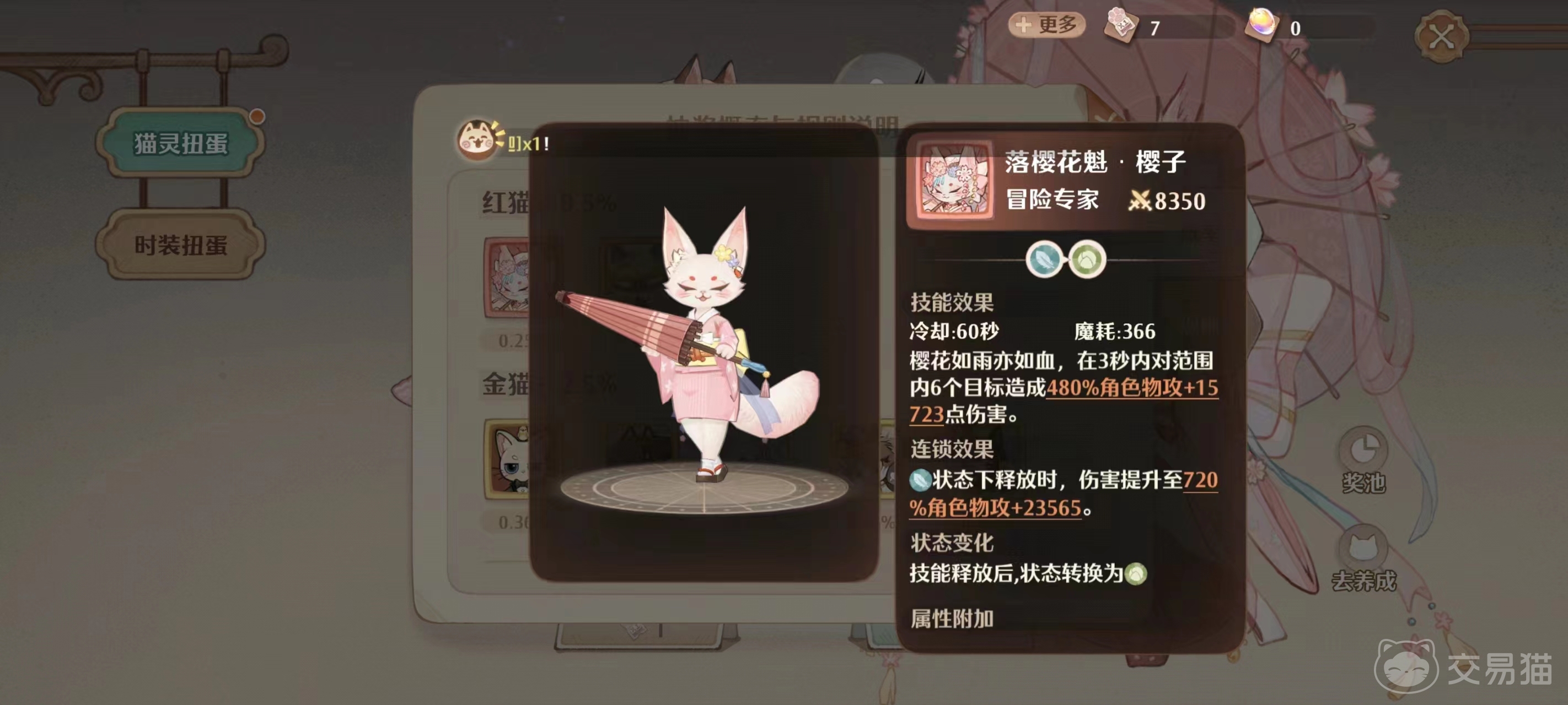 樱子:它算是游戏内雌性气息更足的另一只红帽,高额的品质配上冒险专家的标签让它适用于游戏内的大部分场景,附加的属性包括了只会,防御和生命等多个方面,每一项对比其他品质猫灵都属于比较优秀的存在,不过这其中最高的还是智慧,这一属性能为你的角色在进攻端带来额外加成。