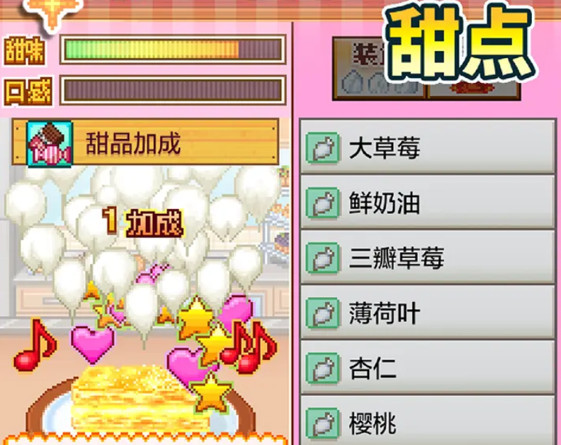 桑达斯,增量鲜奶油,发现第七产地,礼物黑糖浆、创作点数上限提升、点心存货数提升、42满足奖牌。喜欢蛋糕卷、偏好甜、口感清淡。