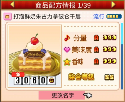 之后是二月的流行商品,它们有打泡鲜奶朱古力拿破仑千层、醇和紫色华夫饼和优雅闪耀卷,其中醇和紫色华夫饼和一月的流行商品是重复的,这主要是因为有一些流行商品的流行时间是不固定的,因此后面也会出现不同月份商品重复出现的情况,大家不要感到奇怪,这是很正常的。那么说回这几件流行商品,在游戏中大家拿到制作单和制作材料后,做出这些糕点商品就可以进行售卖了,这些糕点商品的售卖价格在二月平均是有3万的。