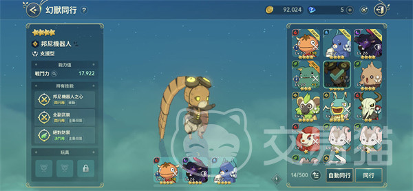 然后呼喵这种幻兽也会分为不同的元素,一共有五种元素可选择,但是每一个位置上面只可放一只呼喵,所以各位玩家一定要选择最高的属性进行放置,这样子才能够获得最大的收益。