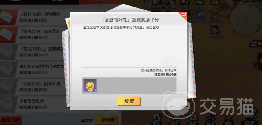 活动期间,玩家点击路飞的个人档案,这时候跳出生日礼包的按钮,点击进出就可以获得生日奖励,如果将生日进行转发,还可以额外获得奖励哦!