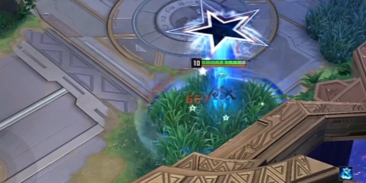 3技能被动效果积攒星辉,积攒满了并且自身位于2技能产生的减速场则可以强化3技能的效果。该技能主动释放是冲向敌人造成伤害,强化后则是消耗全部星辉造成更高的伤害并且还能打出眩晕,并将目标带入传送门,随后和阿美莉卡一起落地。