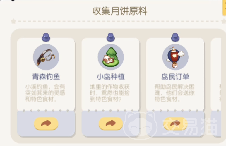 月饼的材料其实可以从森林里面和钓鱼就能获取到,这里推荐去钓鱼获取,因为钓鱼还能获得到更多的其他奖励。游戏中最后一个活动是猜谜,每猜中一个谜题便可以点亮一个祈愿牌,这些祈愿牌都是可以拿到奖励的。
