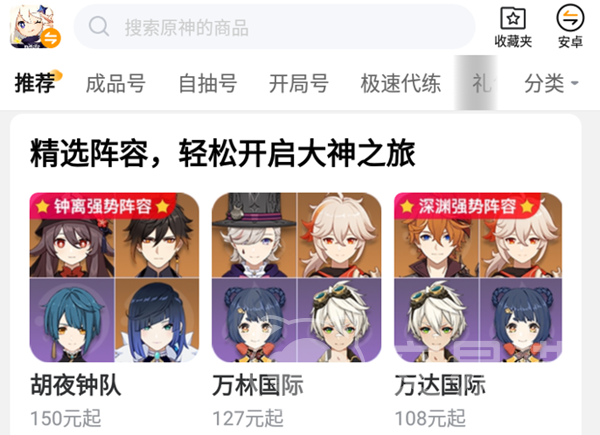 针对一些比较热门的游戏官方还推出了更多人性化的专区功能区域,比如说像原神这样的游戏,除了拥有不同价格和档次的优质商品推荐之外,还会根据出战阵容、版本热门内容等来进行一些账号的推荐,让不太熟悉游戏的新手也能够快速获取到适合自己的账号。