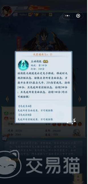 第一个主动技能是可以无视对面角色的速度必定先手,而且在释放的时候是可以直接无视对面带来的控制,驱散掉现有的负面buff,这个时候提升自身30%暴击概率还有25%伤害减免的效果,持续2回合有这样的效果,这个时间段内免疫所有控制状态,且免疫全部的负面效果,这个效果持续1回合,且不可被其他技能驱散。