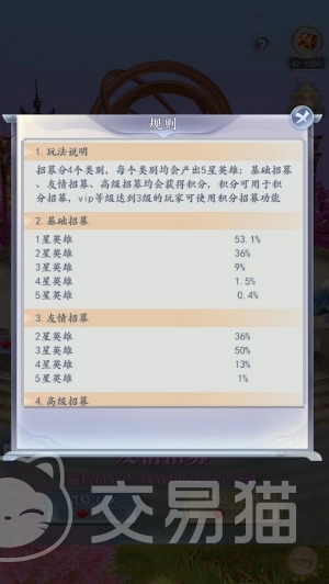 最后是友情招募,这个招募页面中的概率其实算是中等的,在上面大家抽不到一星角色的,最低也是2星角色,所以就把概率都分散了一些,大家最关心的五星角色是有1%的概率可以抽到的,这比上面的基础招募要高一些,大家想要五星角色的话,可以根据以上的介绍自己去选择招募哦。