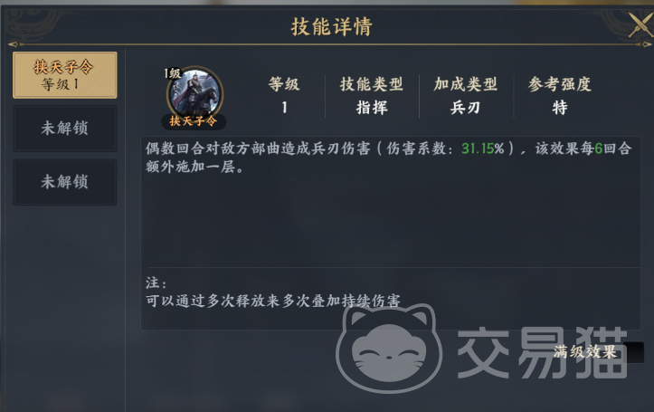 自身的攻击可以对敌人造成兵刃伤害,这个伤害加成高达31.15%,每6个回合会额外增加一层,这个伤害真的非常的恐怖了。
