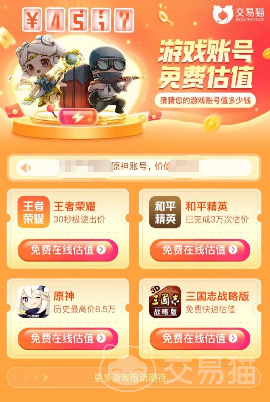 小编之所以这么说,那也一定是有原因的,那么就让我们一起来了解以下,为什么交易猫平台会值得被推荐吧。首先就是交易猫平台支持用户们在王者荣耀这游戏方面,进行免费的账号价值的评估。试想一下,如果我们需要出售掉自己手里多余的闲置账号,那么就得为账号安排一个合理的出售价格,从而保证自己能够有一个合理的收益。毕竟,如果设置的价格偏低的话,即便成功出售了,但是到手的收益不抵当初培养账号所付出的成本,岂不是很亏。价格虚高的话,就会导致账号不好出售,同样的不利于自己。那么此时我们就可以借助平台的力量,为账号进行专业的价值鉴定,而且还不用花钱。