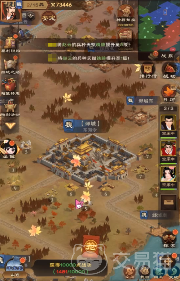 除了获取和培养英雄将领以外,你在建设城池的过程中还需要获取其他各式各样的资源,这些资源可以通过挑战副本来获取,副本中只要击败足够数量的敌军部队,即可获取元宝,钱币,粮食和木材等多种类型的资源奖励!
