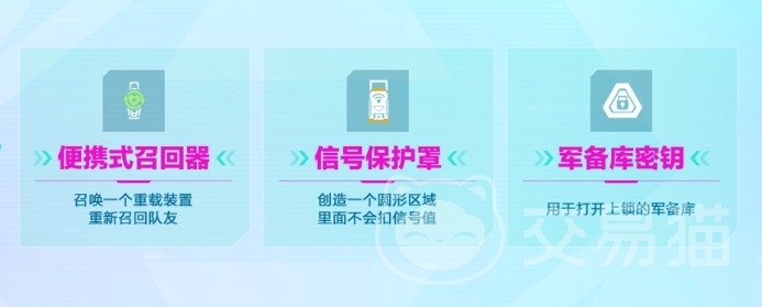 最后就是特殊的一类道具,这里道具比如说便携式召回器其实是一个复活道具,使用的时候可以在上面将队友直接复活,还有一个是信号保护罩,这个道具是可以带来信号值保护的道具,最后一个是钥匙,这个钥匙是可以用来打开上面军备库的哦。