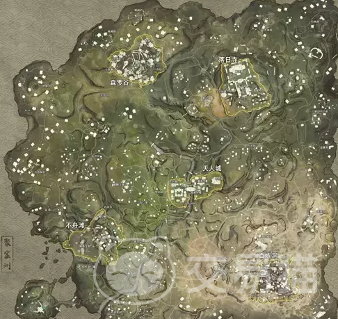 游戏中初始地图叫【聚窟洲】,这个地图是玩家们比较熟悉的,当然最近不是马上上线手游了吗,肯定有大批玩家不知道地图中的玩法和资源分布,所以小编会给玩家们详细介绍一下这款地图中分布的一些资源地形的介绍,目前聚窟洲地图中一共是有五个不同的地区标识,要认真观看哦!