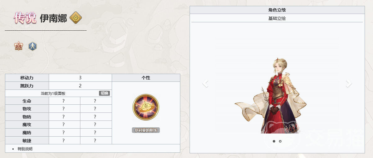伊南娜:伊利亚的公主,拥有圣晶石的力量,可以操纵水和冰。她的天赋是水之祝福,可以在每回合开始时为自己和周围的友军恢复生命,并提高他们的防御。她的技能是冰霜之环,可以对周围的敌人造成冰冻效果,降低他们的移动和攻击速度。她的终极技能是冰河之心,可以对目标区域造成大量的冰冻伤害,并冻结敌人,使他们无法行动。伊南娜是一个优秀的辅助角色,可以为友军提供治疗和保护,也可以对敌人造成控制和伤害。