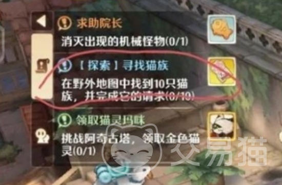 这个任务不受一个强制型的任务,大家在上面是可以通过探索来看到这个任务的,想要完成这个任务大家需要在野外寻找到10只不一样的猫咪,跟这些猫咪对话之后去完成它们的请求就可以完成这个任务,看起来很简单,但是要确保大家找到的猫咪是会发布任务的。