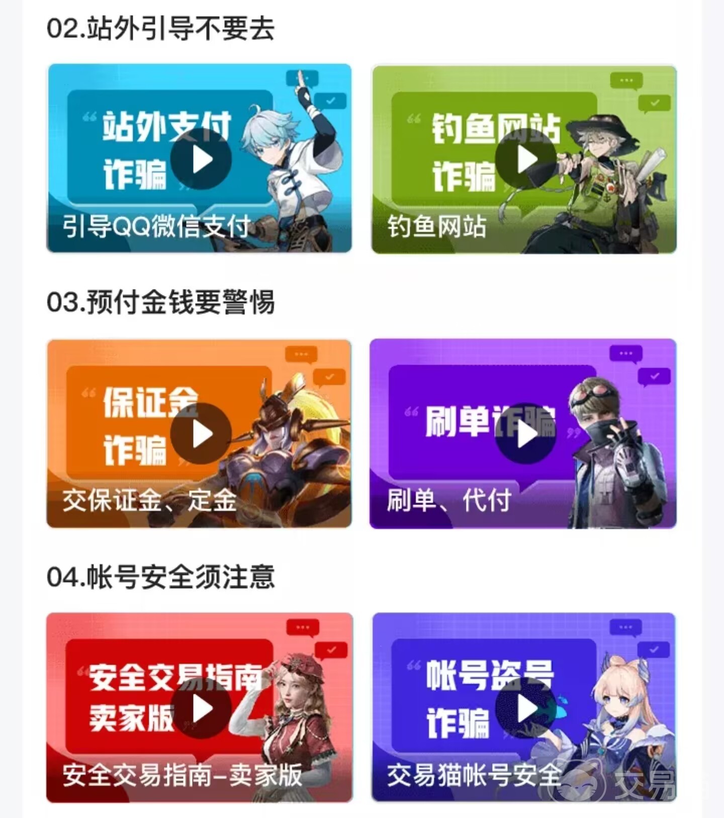 现在也有许多新伙伴不断的加入和平精英这个游戏大家庭。只不过可能有些新用户会直接购买账号。大家在使用交易猫这个软件选择游戏账号之前,平台都会给大家提供一些以防上当受骗的短视频。提高大家在游戏账号交易过程中的自我安全方方意识。当然,为了能够更进一步的保障大家交易的安全,每个用户在使用交易服务签都需要进行身份验证,同时提供的游戏账号都是需要通过官方验证,并且出示相关的验号报告才可以在这里出售。
