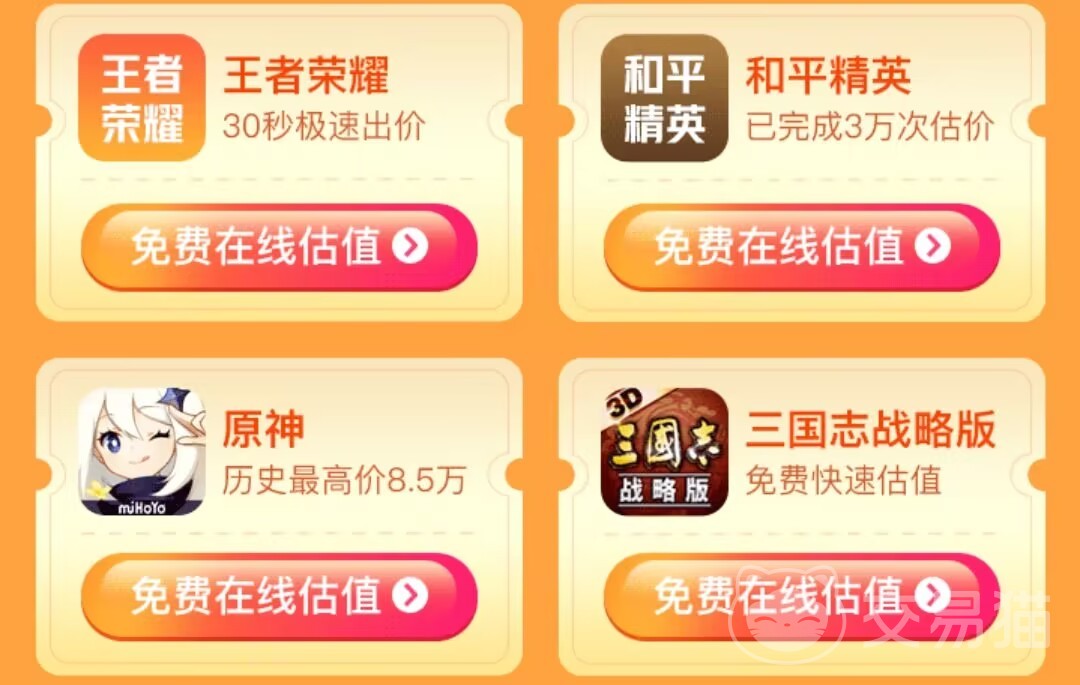 当然经过一届又一届的赛季更新,在和平精英这个游戏里给大家提供的各种付费才可以获得的。角色皮肤,枪械皮肤甚至是载具的皮肤种类是非常多的。许多小伙伴在同自己账号的价值的时候,都非常的眼花缭乱。这时候都可以使用交易猫的账号估值服务,这个服务可以帮助大家更快的获得更加准确的账号价值。当然,这个服务基本上都是免费的。获得准确的价格之后就可以将自己的账号以比较准确的价格在这个平台进行挂售。当然对于买家也可以提前对你看中的账号在这里进行估价,只需将账号里的资源信息收录就可以。