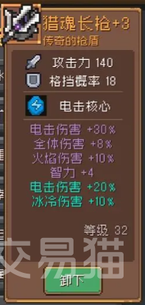 前者猎魂长枪是一把传奇级别的长枪,这把长枪拥有140的基础攻击和18点的格挡概率,当这把长枪得到强化之后就会逐一解锁后续的属性和技能。属性方面,在之后这把长枪会解锁的属性有雷电、火焰、冰冻这三个属性,这三个属性如果大家运气好的话,在后面解锁之后都是可以获得差不多30%的属性加成了,这个属性加成配合上技能流的技能加成,最后给到的伤害是相当恐怖的。除此之外,这把武器还会解锁智力等数值属性的加成,这些加成对技能流来说也是有不小提升的。