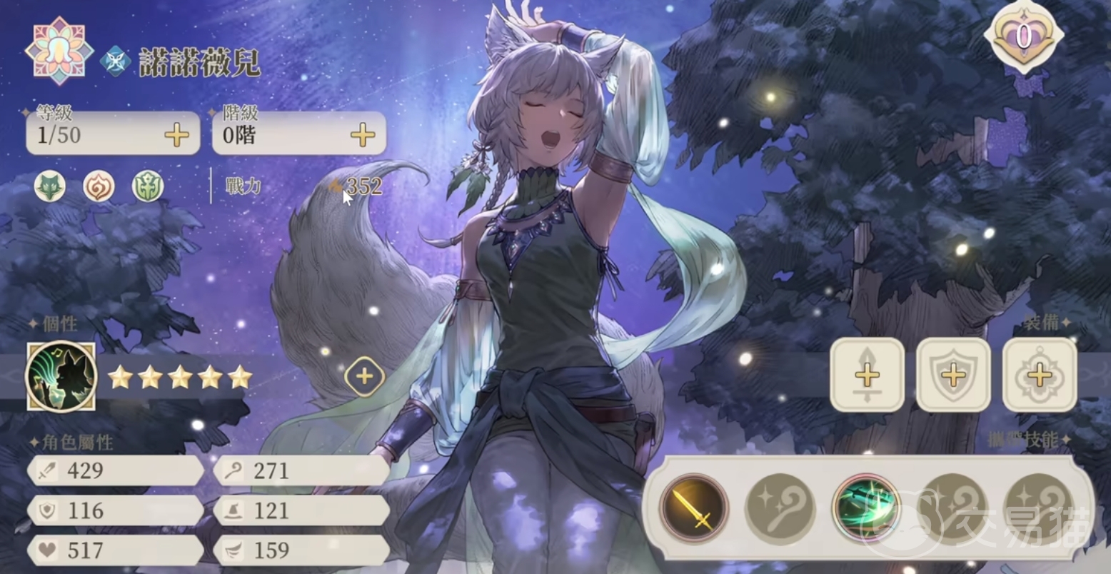 诺诺薇儿是歌姬,在游戏命运螺旋中还有很长段唱歌的剧情,作为传说稀有度角色,诺诺薇儿五星之后可以解锁新的立绘cg。诺诺薇儿角色基础属性面板是:移动力5、跳跃力2、生命327、物攻177、物防55、魔攻124、魔防58、敏捷169。