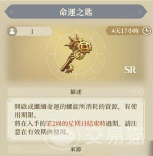 命运之钥是开启轮回副本的通用钥匙,每10个钥匙开启一次,所以如果有门票的话还是用门票,钥匙太消耗了。命运之钥在交易所内可以交易,也可以在商店中购买,也可以在打完愚者的旅途3-5后开启的隐者商店中买材料制作。用命运之钥开启的命运之门副本一轮基本上能稳定拥有7500硬币收益,额外完成事件还有1000硬币奖励。所以说有实力这个钥匙可以多买点。