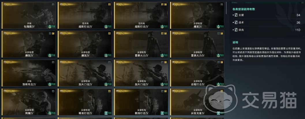 以上就是对七日世界潜能系统的一番介绍,潜能对于枪械的提升是至关重要的,但并不是逮着金色的卡就无脑凑在一起,还是要考虑枪械本身的特点,以及是适合打pvp还是pve。如果是打pvp,在潜能配卡的时候尽量是优先双专属和属性卡,然后是爆发和重装火力,其他的潜能就是补充一些双爆。PVE的配卡也是双专属和属性卡的优先级更高,然后是双对策。其实除了武器还要考虑到防具词缀,一般来防具词缀包含对人伤害减免,对畸变体伤害减免,还有对身体各个部位的伤害减免,其他的则都是字面意思。PVE比较推荐四重装加任意一个,PVP则是2重装1爆破2特勤或者2猎鹰。